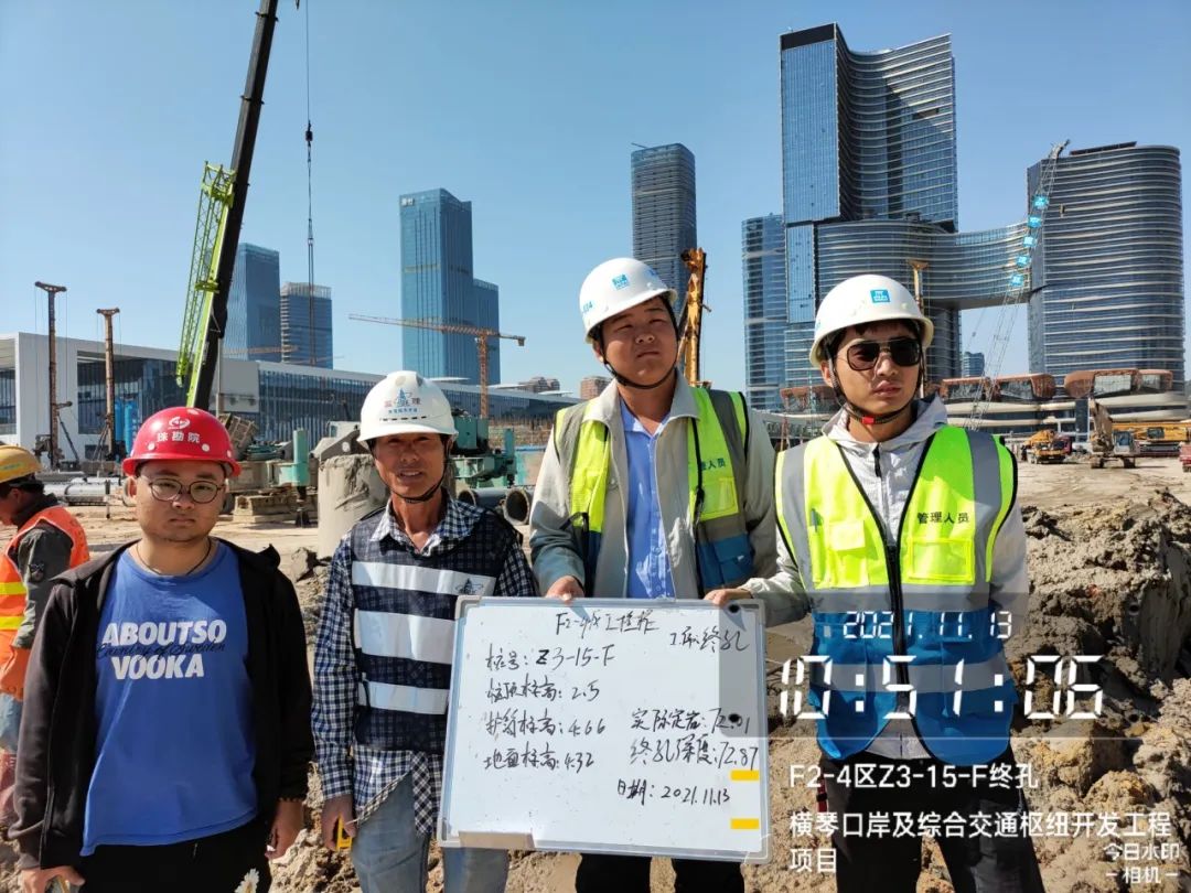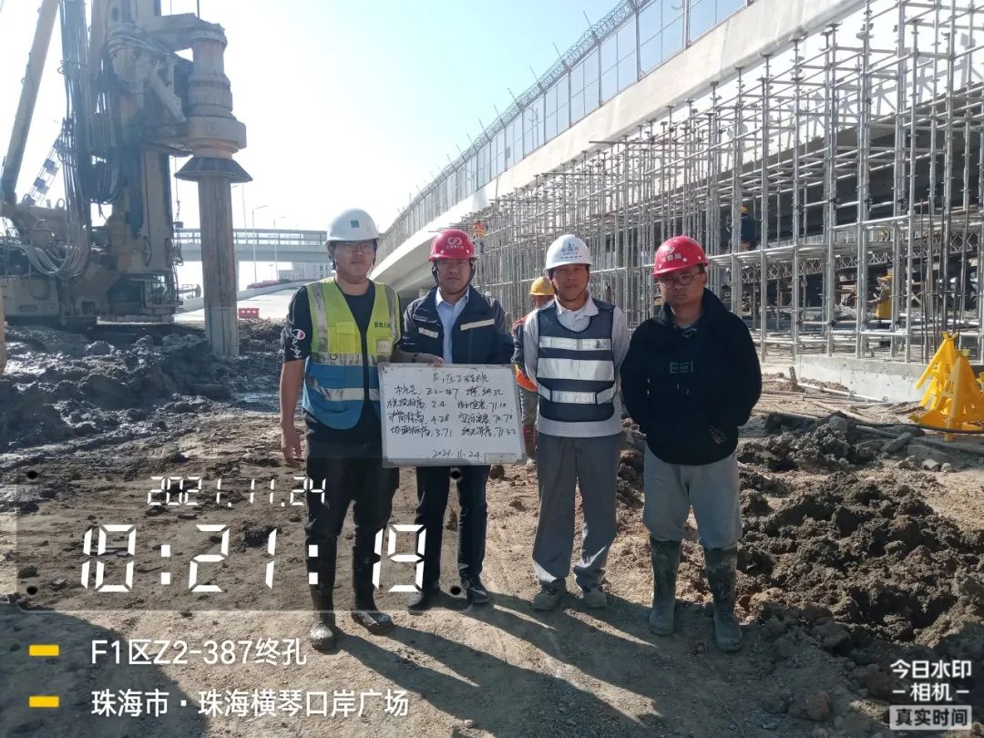 九是質(zhì)量安全。成立質(zhì)量管理小組,制定質(zhì)量管理措施,按照公司安全管理規(guī)定,落實責(zé)任到人、層層把關(guān),定期開展安全檢查,兼顧突擊檢查,避免安全隱患。如對項目樁基礎(chǔ)等重要工序,結(jié)合工程工序相關(guān)查驗標(biāo)準,全過程記錄每條樁的超前鉆、鋼護筒、樁孔重要參數(shù),并對不同數(shù)據(jù)互相比對,確保每道工序按圖施工。2021年10月起,指揮部成員輪流值班,跟進每一條樁基終孔驗收工作,并拍照留底。據(jù)統(tǒng)計,驗樁共安排輪值共113次。