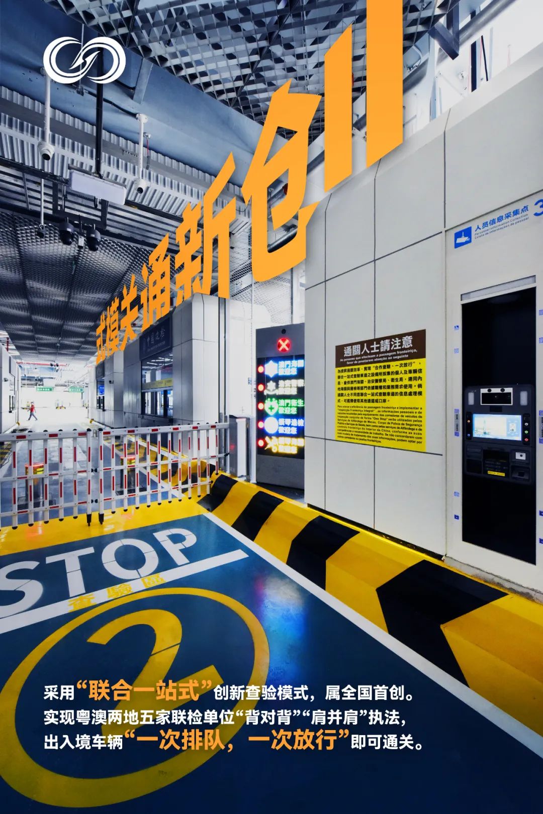 橫琴口岸二期工程客貨車聯(lián)合一站式車道采用“合作查驗,一次放行”創(chuàng)新查驗?zāi)J?,實現(xiàn)出入境車輛“一次排隊,一次采集,一次放行”,與傳統(tǒng)的“兩地兩檢”查驗?zāi)J较啾?,該模式徹底改變了過境人員來回換乘穿梭巴士擺渡的問題。