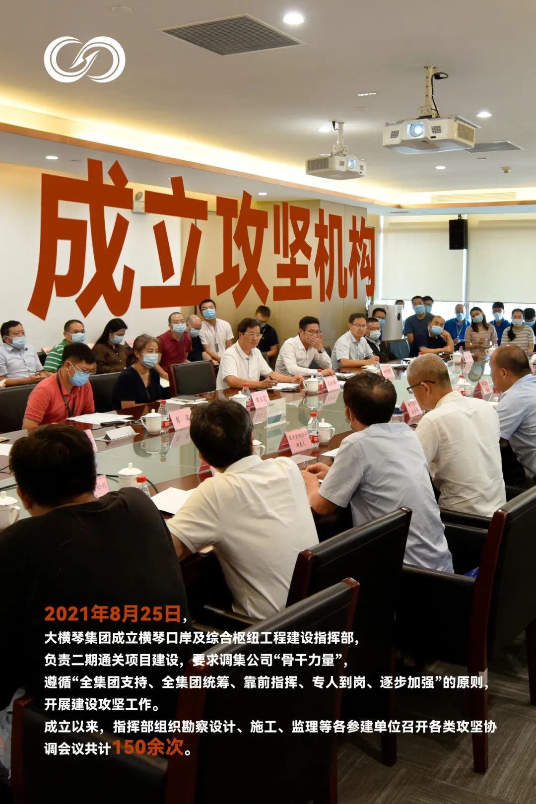 橫琴口岸二期通關(guān)項目的建設(shè)極其復(fù)雜,2021年8月,為確保高質(zhì)、高效完成口岸項目通關(guān)部分建設(shè)任務(wù),強化對項目建設(shè)的組織領(lǐng)導(dǎo),珠海大橫琴集團有限公司(以下簡稱大橫琴集團)決定成立橫琴口岸及綜合樞紐工程建設(shè)指揮部,負責(zé)二期通關(guān)部分建設(shè),要求采取有效措施,舉全集團之力推動項目建設(shè)。