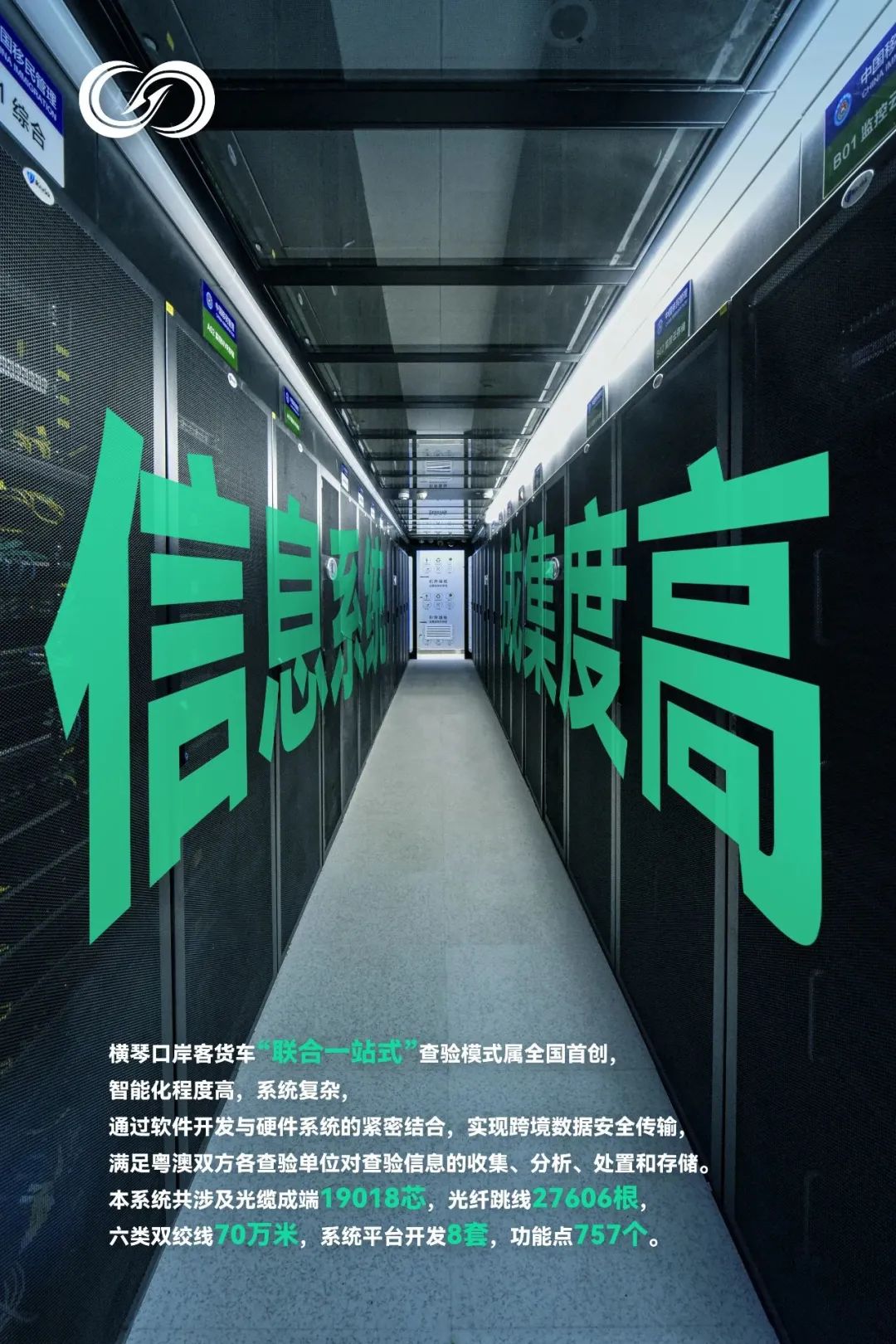 橫琴口岸客貨車“聯(lián)合一站式”查驗?zāi)J綄偃珖讋?chuàng),智能化程度高、系統(tǒng)復(fù)雜,信息化工程將軟件系統(tǒng)、硬件設(shè)備與通信系統(tǒng)高度集成,指揮部通過軟件開發(fā)與硬件系統(tǒng)的緊密結(jié)合,實現(xiàn)跨境數(shù)據(jù)高效傳輸,以滿足粵澳雙方各查驗單位對查驗信息的收集、分析、處置和存儲。