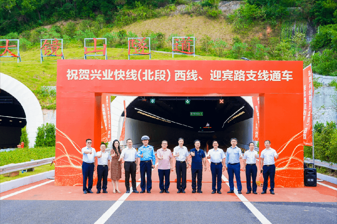 作為打通主城區(qū)南北交通“大動(dòng)脈”的重要通道,興業(yè)快線自建設(shè)以來(lái)備受廣大市民關(guān)注。其中興業(yè)快線(北段)工程,全長(zhǎng)約17.1km,礦山法暗挖段12.3km,明挖暗埋3.0km,橋梁1.8km,矩形頂管90m,工程總投資額約64億元,采用ppp模式投資建設(shè)。此次西線通車范圍包含大鏡山隧道、山谷段橋梁、楊寮隧道等,另外迎賓路支線石溪隧道以及大鏡山橋梁此次一并開(kāi)放通車,整體通車?yán)锍碳s10千米。