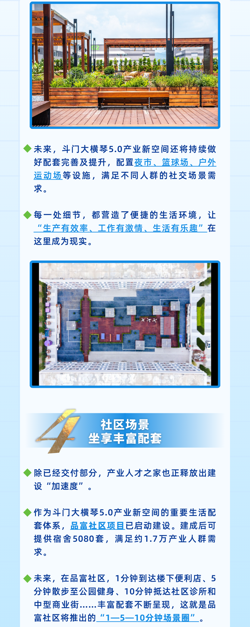新空間,托起產(chǎn)業(yè)新夢想。作為一座能“拎機(jī)投產(chǎn)”“拎包入住”的高質(zhì)量園區(qū),斗門大橫琴5.0產(chǎn)業(yè)新空間不僅適應(yīng)新形勢、賦能新技術(shù)、承載新產(chǎn)業(yè),還配備能滿足員工吃、住、娛樂休閑等需求的生活、商業(yè)配套。