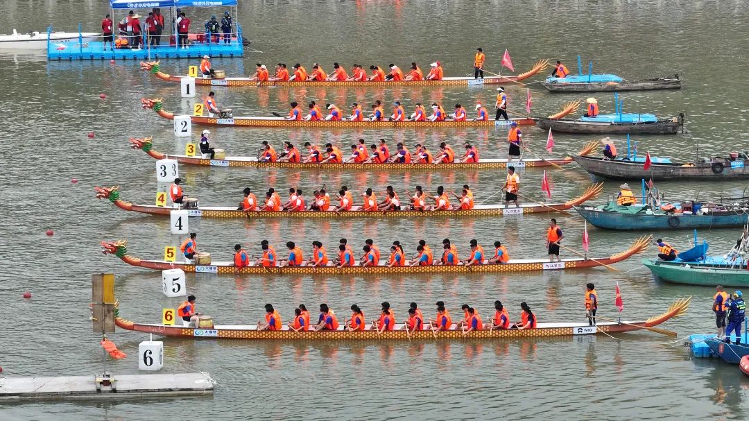 11點(diǎn)20分,巔峰對決正式拉開。6支龍舟如離弦之箭般在水面上沖刺,每一支隊(duì)伍不再保留實(shí)力,從一開始就拿出十足的沖勁。