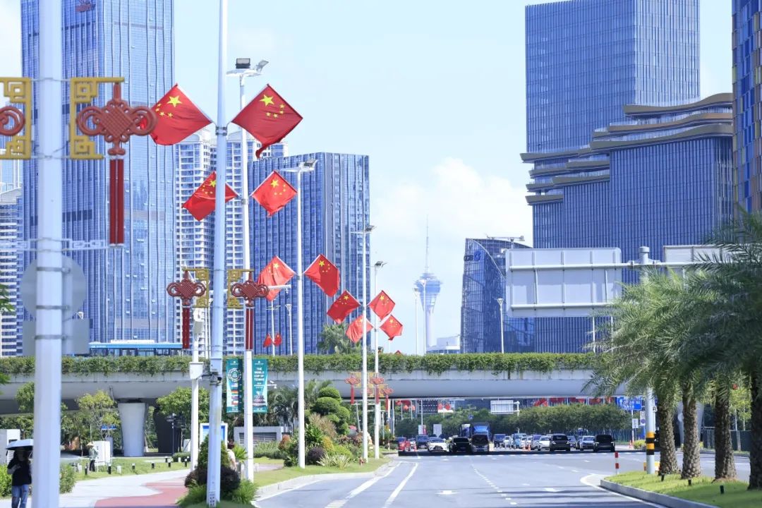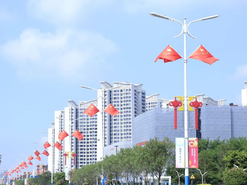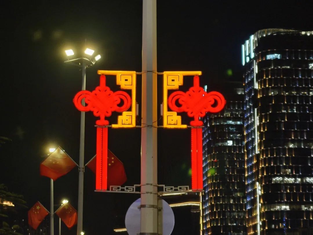 大橫琴城資在港澳大道、環(huán)島西路等重點路段懸掛了 230套中國結,以亮麗的形象喜迎國慶。