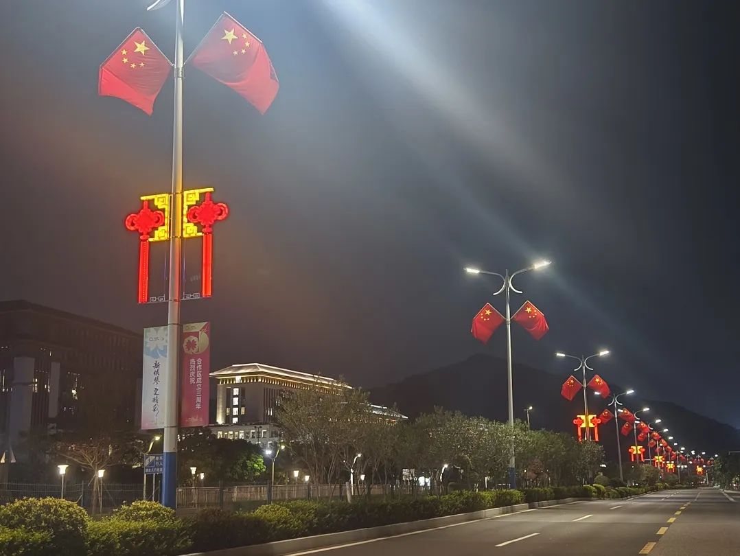 隨著國慶的腳步漸近,橫琴粵澳深度合作區(qū)(以下簡稱合作區(qū))處處洋溢著喜慶歡快的節(jié)日氛圍,高高掛起的中國結,璀璨絢麗的創(chuàng)意燈飾,清新怡人的綠化美景……每一處都在訴說著節(jié)日的喜悅,在合作區(qū)城市規(guī)劃和建設局指導下,珠海大橫琴城市公共資源經(jīng)營管理有限公司(以下簡稱大橫琴城資)全面開展城市美化亮化工作,在合作區(qū)各主次干道、公園、重要節(jié)點等地,精心設計布置,以節(jié)日盛裝,向祖國母親深情告白。
