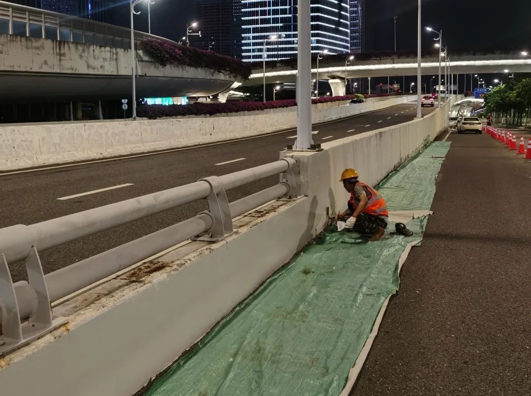 道路、橋梁作為基礎交通設施,也是城市景觀的重要組成部分。為打造靚麗舒適的出行環(huán)境,大橫琴城資在港澳大道立交主線橋及匝道、濠江路立交主線橋及匝道進行防撞墻和引橋擋墻的打磨、找平、刷漆等養(yǎng)護作業(yè),施工面積達20000㎡,在美化通行環(huán)境、提升路容路貌的同時,切實消除安全隱患,提升了道路通行安全系數(shù)。