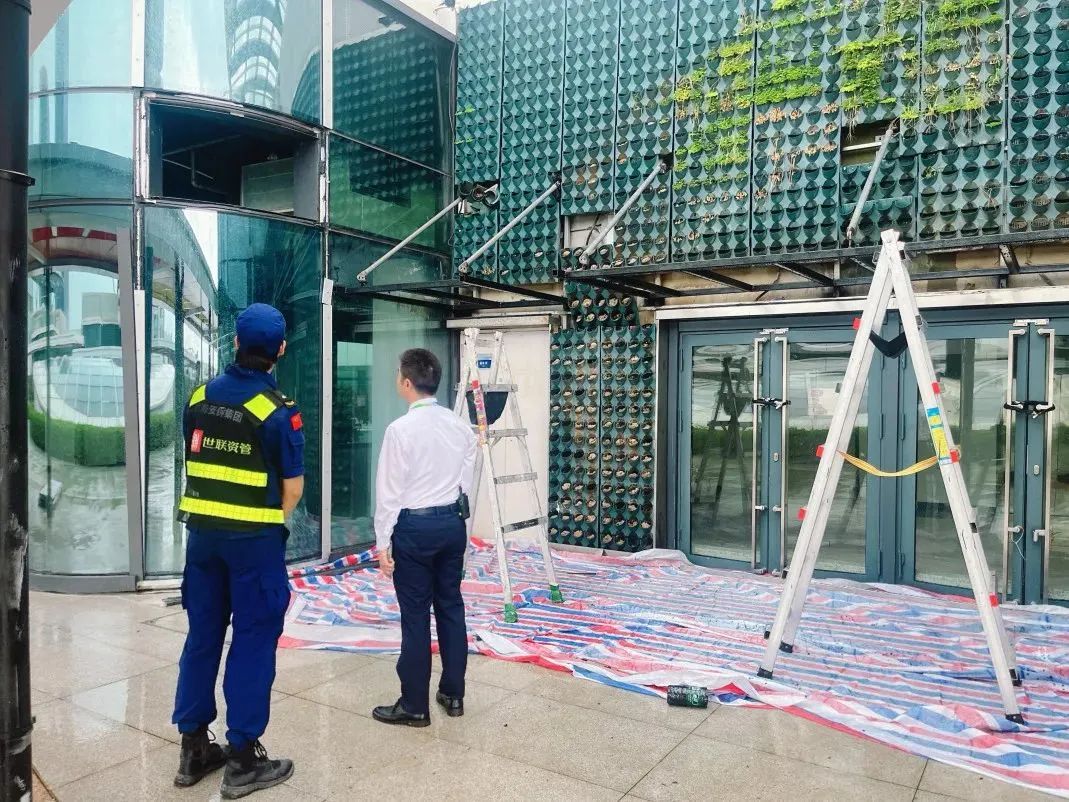 一是對園區(qū)內(nèi)所有建筑物門窗關(guān)閉情況進(jìn)行檢查,安排人員上門協(xié)助企業(yè)客戶關(guān)閉門窗并建立留存企業(yè)應(yīng)急聯(lián)系人聯(lián)系方式。二是對園區(qū)內(nèi)種植樹木進(jìn)行檢查,已加固并將過多過長的樹枝修剪858余棵。三是清理各建筑物樓頂天面雜物,疏通天面下水系統(tǒng);檢查各區(qū)地面排水井道,清理井內(nèi)雜物。四是放置防汛沙袋2200包至園區(qū)電梯、展廳處、天面、商鋪入戶門、樓層連廊、地庫入口等重點(diǎn)部位。五是收回園區(qū)室外水馬、鐵馬、雪糕筒、拒馬、商業(yè)外擺、煙灰缸、垃圾桶、花箱、一米欄、國旗等室外可移動物品約500個。六是協(xié)助企業(yè)客戶搬運(yùn)外擺花箱、休息桌椅、太陽傘物品約20余套。七是發(fā)出臺風(fēng)預(yù)警信號溫馨提示6宗。八是關(guān)閉斗門大橫琴5.0產(chǎn)業(yè)新空間C區(qū)及橫琴國際科技創(chuàng)新中心4幢運(yùn)動中心。九是啟動橫琴國際科技創(chuàng)新中心9號樓應(yīng)急避難場所1處,接收避難工人534 人。備用斗門大橫琴5.0產(chǎn)業(yè)新空間應(yīng)急避難場所G1、G2、G3廠房3處,以滿足園區(qū)防御工作需要。