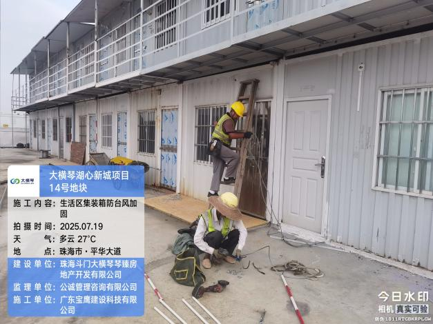 大橫琴置業(yè)公司提前統(tǒng)計各建設(shè)項目的臨險人員數(shù)量,提前踏勘轉(zhuǎn)移安置場所。7月19日16點(diǎn),組織所有項目避險人員在18點(diǎn)前全部迅速轉(zhuǎn)移、不漏一人。在建項目臨險人員約4286人,各項目落實(shí)了應(yīng)急轉(zhuǎn)移安置場所,充分準(zhǔn)備了物資、食品運(yùn)輸?shù)礁黜椖勘茈y場所,組織大巴車接送工人,反復(fù)檢查確保項目施工現(xiàn)場、工人板房宿舍無一人留滯,應(yīng)急轉(zhuǎn)移場所里安排了值班值守維持秩序,禁止私自外出。