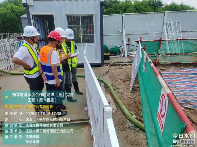 大橫琴股份公司提前部署防風(fēng)專項排查,組織對橫琴環(huán)島西路二期及環(huán)島西路至長隆大道繞行大橫琴山道路工程、厚樸道擴(kuò)建工程等17個在建項目開展全覆蓋檢查。重點(diǎn)排查起重設(shè)備、攪拌樁機(jī)械等大型設(shè)備的加固情況,以及深基坑、工地圍擋、臨時工棚、施工臨時用電等項目的防護(hù)措施。累計發(fā)現(xiàn)隱患問題20余項,已于7月19日17時前全部完成整改。