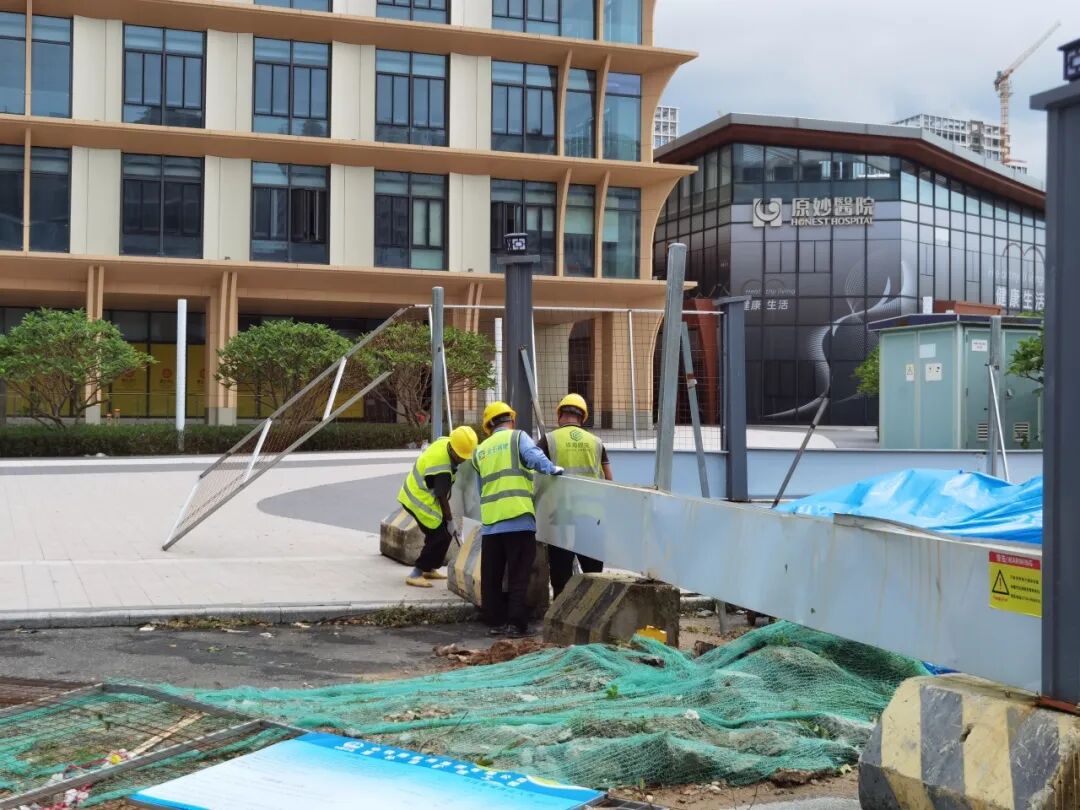 自9月24日晚上起,珠光集團(tuán)對旗下橫琴國際科技創(chuàng)新中心、斗門珠峰科創(chuàng)中心、珠光產(chǎn)業(yè)新空間等園區(qū)開展安全隱患排查,逐戶檢查園區(qū)企業(yè)室內(nèi)是否存在窗戶吹壞、天花掉落、幕墻滲漏水等情況,迅速啟動園區(qū)復(fù)原清障工作,開展全覆蓋的巡查和排除險(xiǎn)情工作,清理主干道的倒伏樹木、斷枝,處置垃圾雜物、清掃積水,解封單元門加固木方,保障在園企業(yè)正常生產(chǎn)經(jīng)營,提振企業(yè)信心。