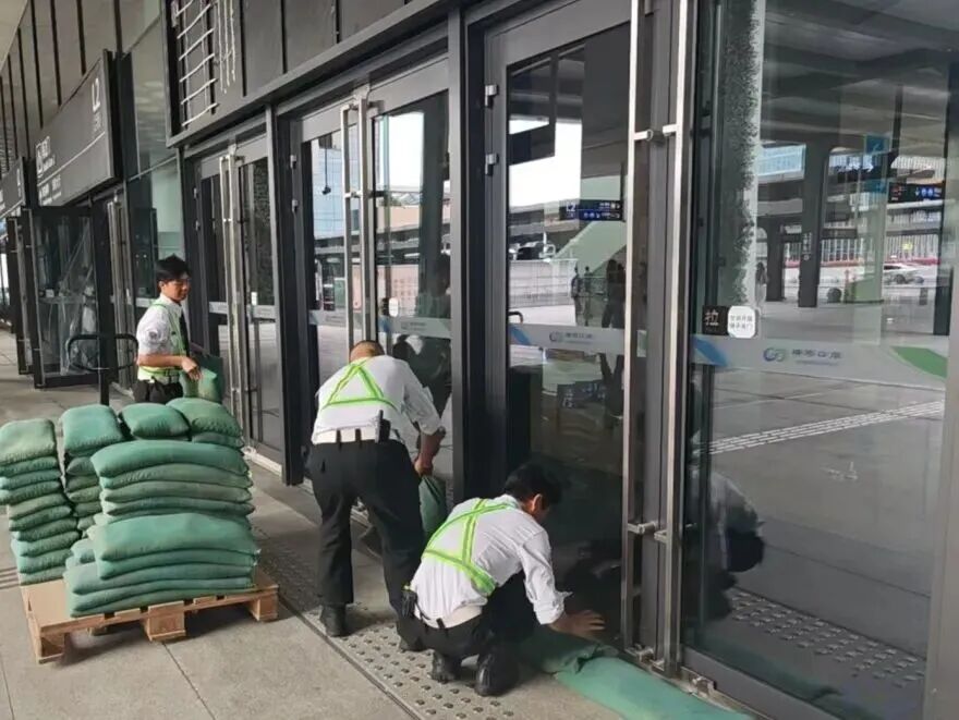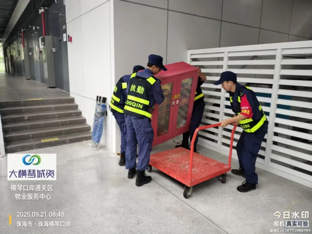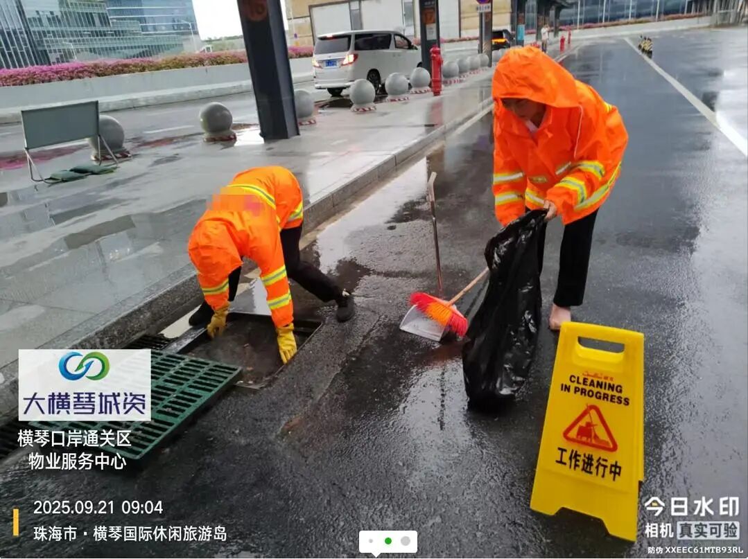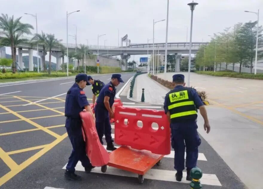 在橫琴口岸區(qū)域,提前排查200多個(gè)集水井,調(diào)集230個(gè)緊固件加固門(mén)窗,近3000條沙袋、近100個(gè)防洪擋板、11臺(tái)水泵等應(yīng)對(duì)福臨道、地庫(kù)36處接駁口、負(fù)二層下沉庭院、U行車(chē)道等重點(diǎn)區(qū)域強(qiáng)排和封堵需要。同時(shí)對(duì)通關(guān)區(qū)域的100余扇玻璃門(mén)進(jìn)行加固,在易水浸區(qū)域放置沙袋、擋板。同時(shí),全面清理雨水井、排水溝渠,確保排水暢通。